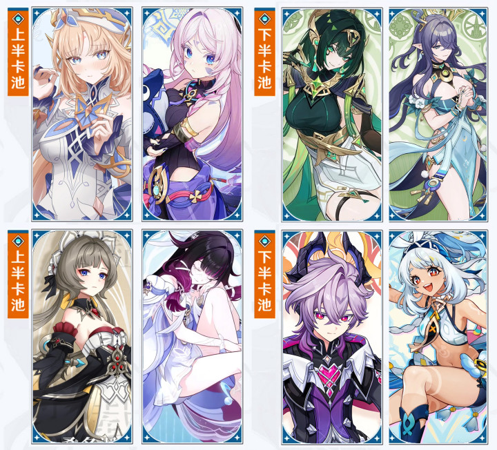 下半的陪跑四星还是蛮香的,可能策划要知道兹白的月结晶体系强度堪忧,所以才安排叶洛亚和五郎这两位陪跑吧。